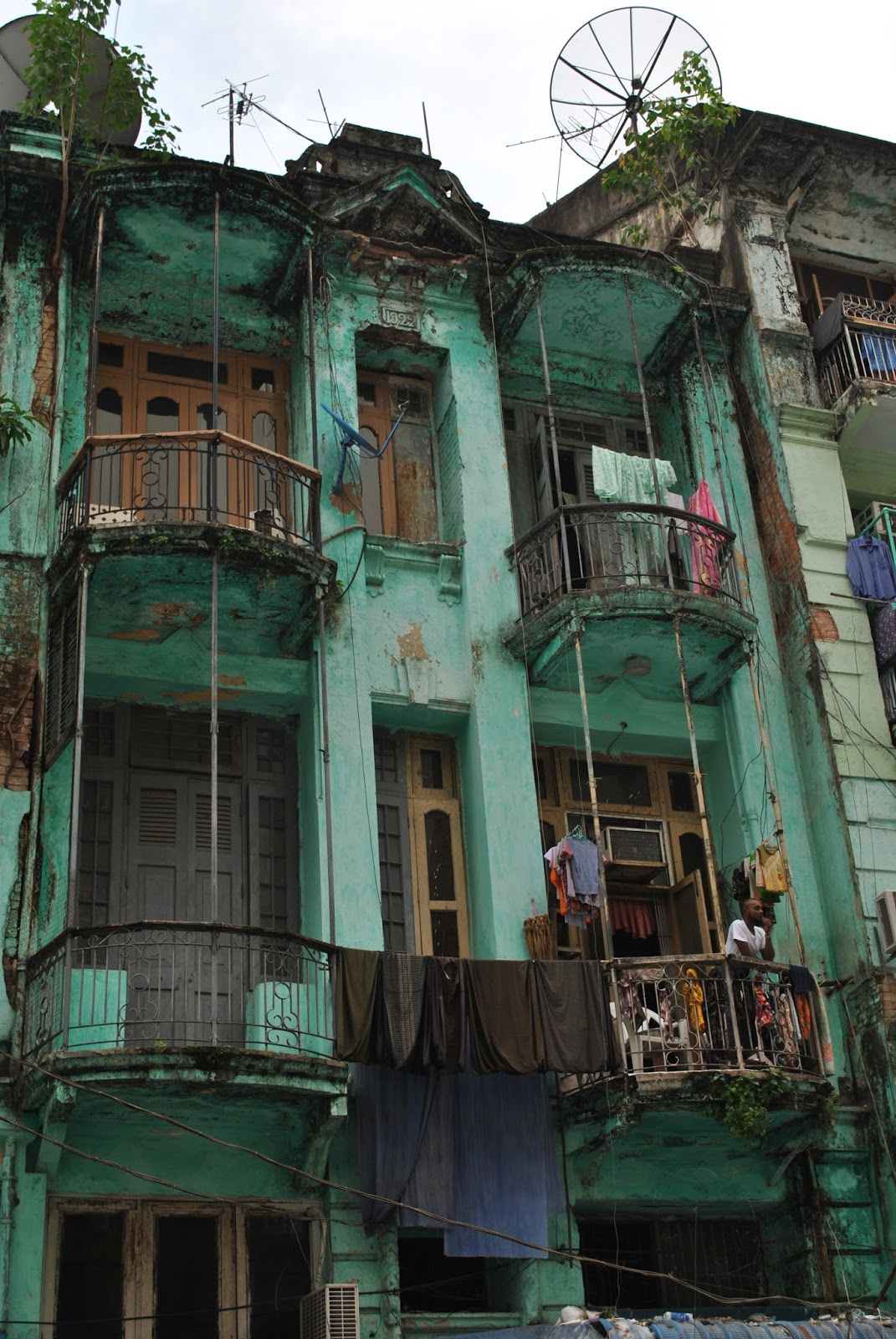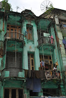 A próxima zona da cidade que visitamos foi a baixa, entre o Bogyoke Market e a Sule Pagoda. São uma serie de ruas paralelas com casas do tempo colonial coloridas. Parece que estamos na India, ou no Bangladesh. De facto há uma grande comunidade de gente proveniente do Bangladesh em Yangoon. Diz-se que nos tempos coloniais, a dada altura, Rangum tinha mais emigrantes do Bangladesh e da India do que birmaneses. Aqui nesta parte da cidade, parece que nada mudou. As ruas no entanto são muito sujas o que certamente não acontecia nesses tempos. Passamos também por uma mesquita o que denota a faceta multicultural desta cidade.