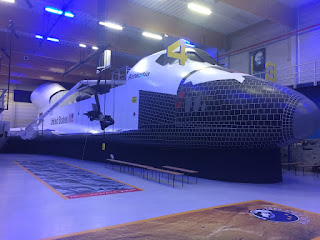 Ás 17:30 vamos fazer uma visita guiada ao Euro Space Center. A esta hora o centro já está fechado ao público. Temos o epaço todo para nós. O guia leva-nos para a nave principal do centro onde está exposto um modelo à escala de um space shuttle da NASA que  comecou a desbravar o espaço no século passado. Atualmente já estão fora de operação, mas foram até 2013 utilizados para transporte de módulos para a estação espacial internacional.