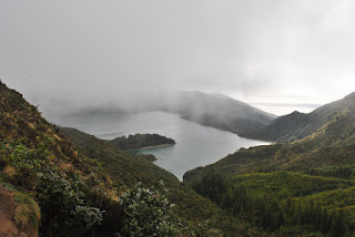Hoje vamos visitar a parte central da ilha de São Miguel. A nossa primeira paragem foi na lagoa do Fogo, que figura entre as maiores da ilha. Paramos nu miradouro da Barrosa junto à estrada para apreciar a graciosidade desta obra da natureza. Ao contrário das outras lagoas que já visitamos, a lagoa do Fogo não tem acesso por estrada. Se nos quisermos aproximar da lagoa temos de nos deslocar por trilhos que descem até à água. Não vimos preparados para a caminhada, por isso tem de ficar para uma próxima vez.