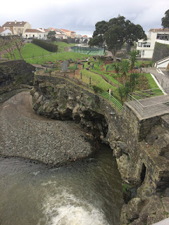 A Ribeira Grande é a segunda maior cidade da ilha, a seguir a Ponta Delgada, e já foi em tempos a capital da ilha. Visitamos a Igreja de Nossa Senhora da Estrela. Do cimo da escadaria avista-se primeiro o coreto, em baixo, e ao longe o oceano. Esta é uma cidade ribeirinha. Depois passamos pelo edifício da câmara municipal na praça central onde desagua a ribeira que dá o nome à cidade. Enquanto as senhoras vão a um minimercado fazer umas compras, eu faço uma visita inesperada.